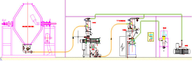 二次真空输送:2#料仓中的物料通过真空输送设备2输送至 3# 料仓。